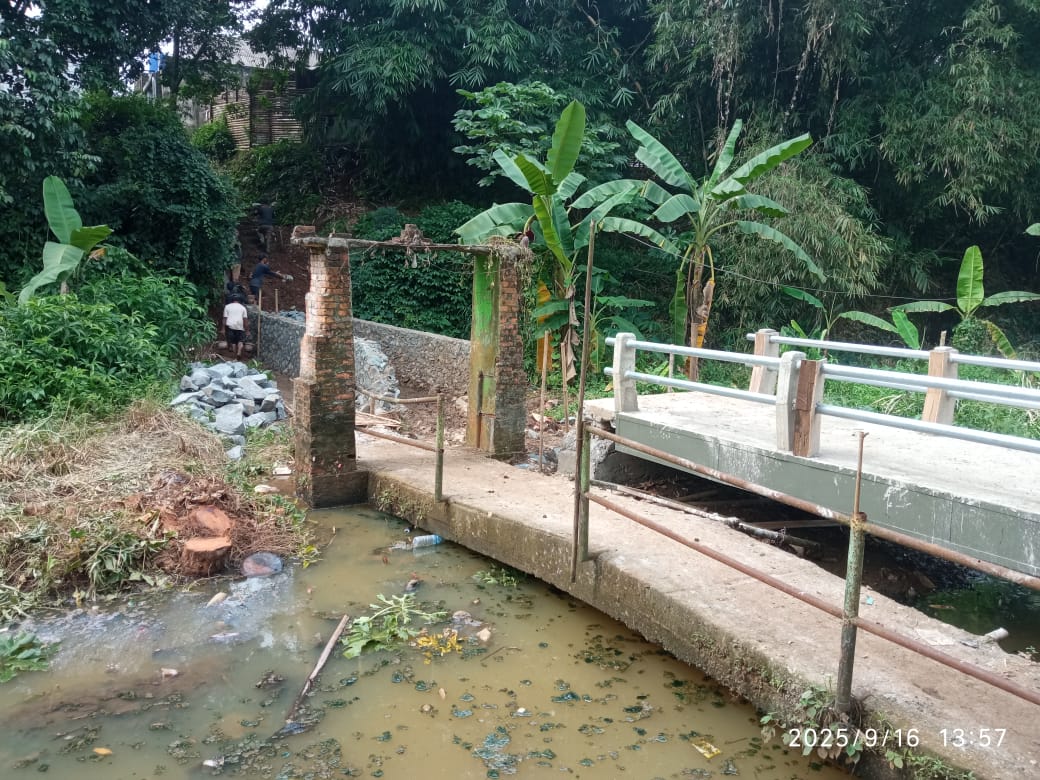 KABAR BOGOR (KPN) – Pemerintah Desa (Pemdes) Dramaga terus menggenjot pembangunan infrastruktur demi meningkatkan mobilitas dan kenyamanan warganya. Salah satu fokus utama adalah pembangunan Tembok Penahan Tanah (TPT) dan jembatan di sejumlah titik strategis desa. Sabtu, (20/09/2025).