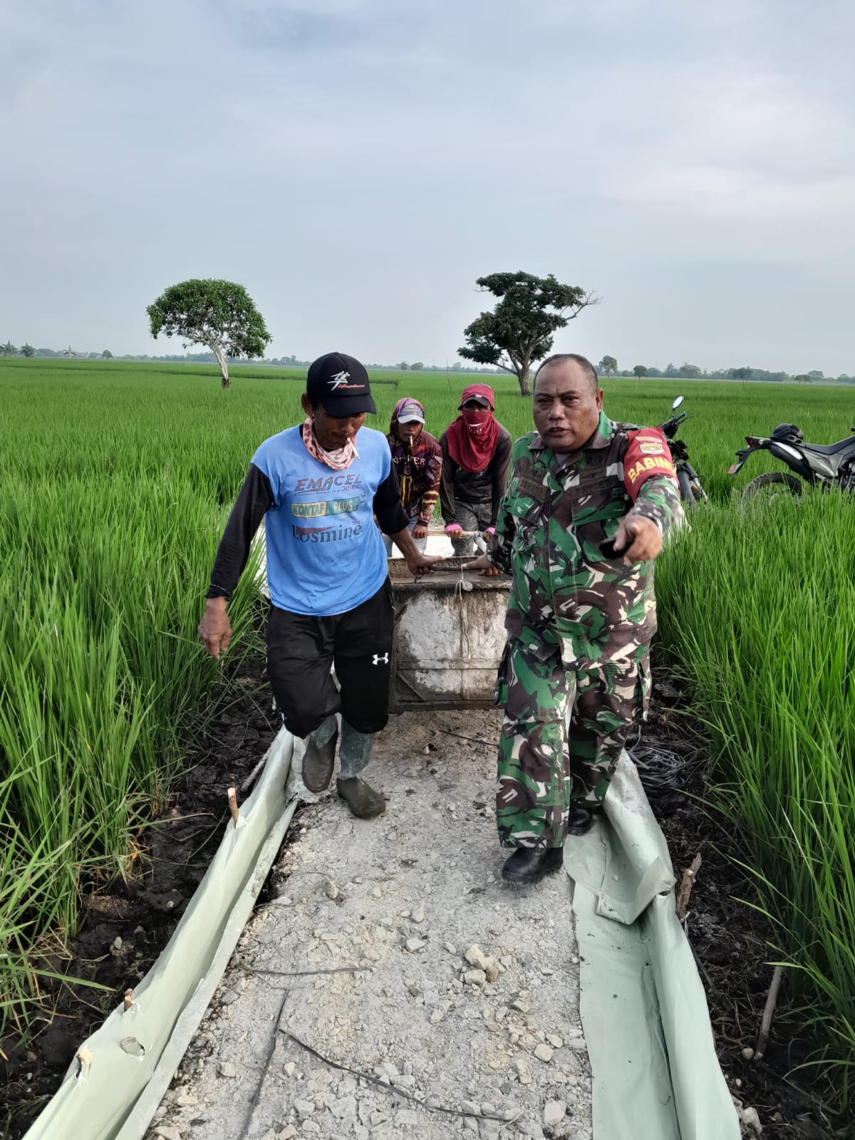 Bekasi Pebayuran, — Upaya TNI dalam memperkuat ketahanan pangan terus berlanjut. Minggu (18/10/2025), Babinsa Koramil 11/Pebayuran Kodim 0509/Kabupaten Bekasi sertu Surata bersama masyarakat melaksanakan kegiatan pengecoran jalan pertanian di Kampung Kobak Ceper RT 06/RW 02, Desa Karangharja, Kecamatan Pebayuran, Kabupaten Bekasi.