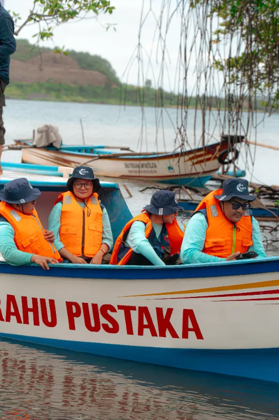 Perjalanan relawan Aksi Nyata HKA dimulai dari Dermaga Pos Polisi Air & Udara, Desa Sumur, Kecamatan Ketapang, sebelum menyeberang ke Pulau Rimau menggunakan kapal Perahu Pustaka kapal bantuan HKA bersama Hutama Karya Group yang juga menjadi sarana literasi bagi masyarakat pesisir.