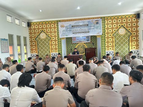 KUANSING – Polres Kuantan Singingi melaksanakan kegiatan ceramah agama Islam (Tabligh Akbar) dan ibadah bagi personel beragama Nasrani, Senin (6/4/2026).