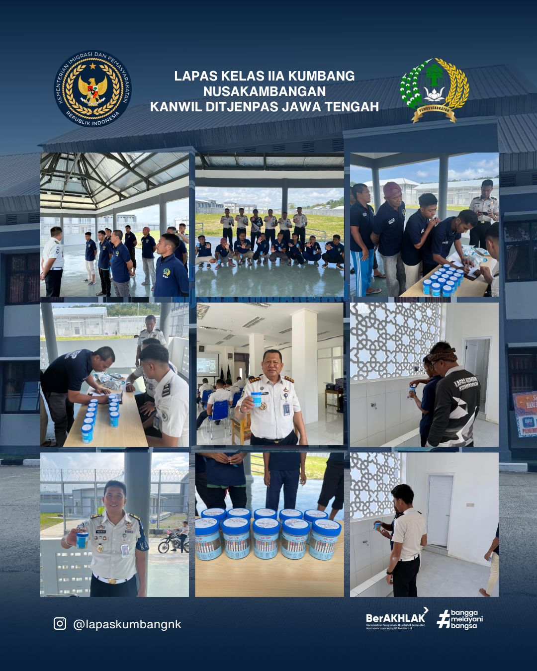 NUSAKAMBANGAN, Kabarpubliknews.com Lembaga Pemasyarakatan (Lapas) Kelas IIA Kumbang Nusakambangan menggelar kegiatan pemeriksaan urine untuk pertama kalinya yang melibatkan baik jajaran petugas maupun Warga Binaan Pemasyarakatan (WBP). Kegiatan ini dilaksanakan pada hari Senin, 6 April 2026 pukul 13.00 WIB.