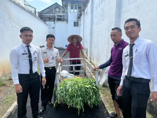 Panen kangkung tersebut dilaksanakan oleh petugas Subseksi Bimbingan Kegiatan dengan melibatkan peserta magang serta warga binaan. Suasana kebersamaan dan semangat gotong royong tampak mewarnai proses panen, yang sekaligus menjadi sarana pembelajaran praktis bagi warga binaan dalam mengelola sektor pertanian sederhana.