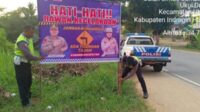 Tekan Angka Kecelakaan Lalu Lintas, Satlantas Polres Pelalawan Pasang Spanduk Himbauan Keselamatan Berlalu Lintas